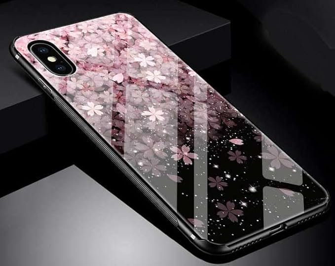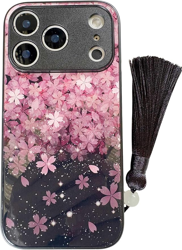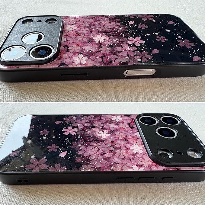 KOLO【桜 花びら上 小】iPhone対応 17 Pro Max スマホケース ガラス さくら 花柄 サクラ カバー(黒) iPhone17 Pro Max
