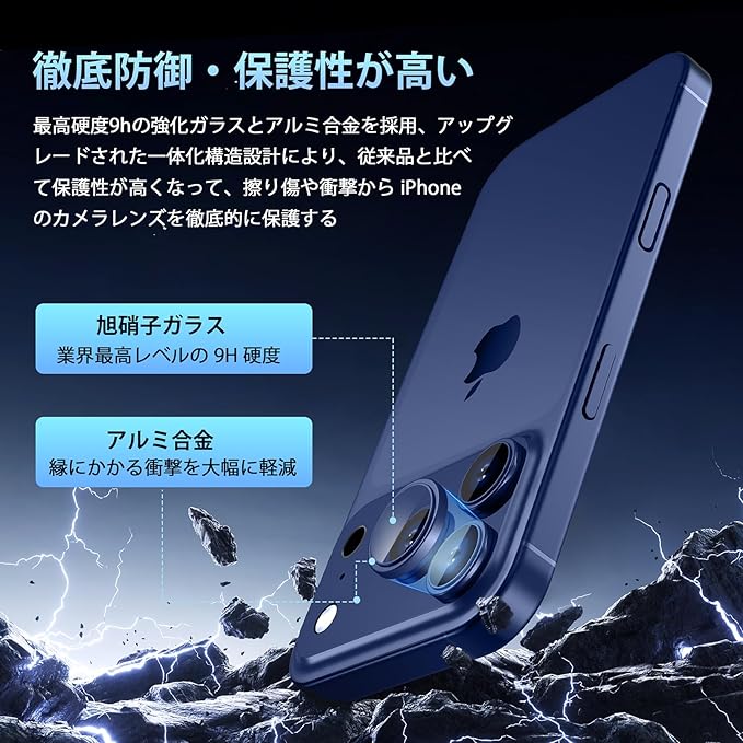 【キズ防止】 いphone17pro max レンズカバーの真ん中にAR超高透過率ガラスを採用され、レンズフィルムの周りにアルミニウム材質を採用、9H硬度で擦り傷や衝撃からカメラレンズを全面保護します。アルミ合金製なので耐久性は普通のガラス製のカメラフィルムより10倍アップ!保護性が高いです。