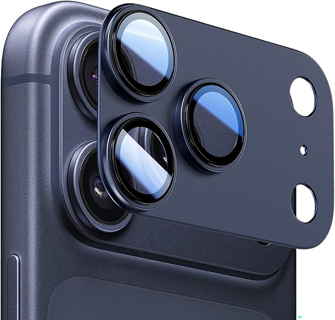 JFStene カメラカバー いphone17Pro max 用 レンズ保護 フィルム iPhone17プロマックス 対応 カメラレンズ保護 アルミ 強化ガラス 9H硬度 キズ防止 耐衝撃 高透過率 極薄 一体感 防塵 全面保護 1枚入り (ネイビー, iPhone17ProMax 用)