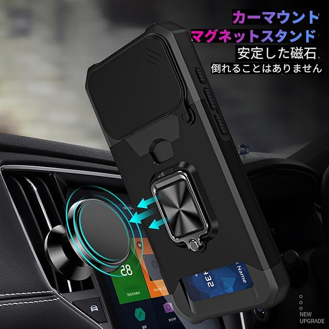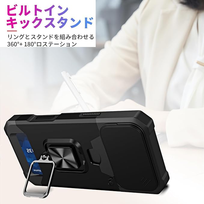 【スタンド機能&内蔵マグネット】360度回転スタンド、動画視聴にも、45 ℃角度調節自由自在に使, 一番最高の視角で鑑賞の同時ににお手を解放できます。金属製のリングと内装の金属フィルムは、車載の磁気吸盤にしっかりと吸着することができ、運転中に携帯電話のナビゲーションなどの機能をより便利に使用することができます。