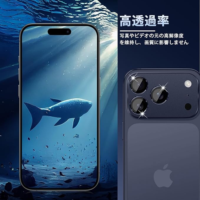 カメラフィルム iPhone 17 Pro Max 対応 レンズカバー、アルミ合金+9H硬度強化ガラス製 アイフォン17 Pro Max 用 レンズカバー 全面保護 高透過率 露出オーバー防止 耐衝撃 カメラ保護フィルム - ブルー