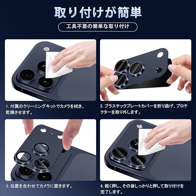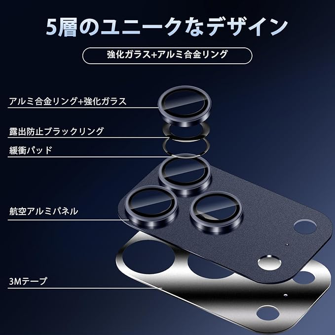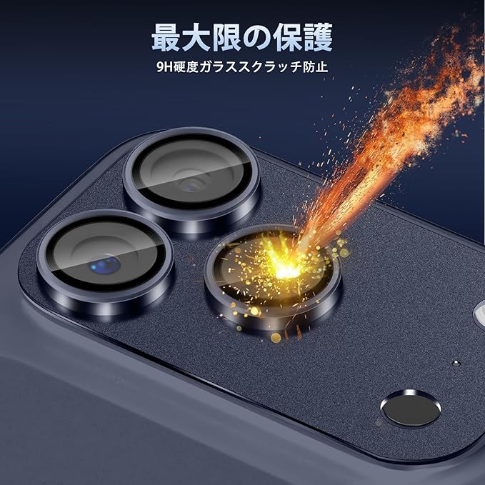 【対応機種】 このカメラフィルムは iPhone 17 Pro Max に専用設計、従来品のガラス製と違って、本製品はアルミニウム合金+9H硬度強化ガラス製、本体に融合していく、一体感と高級感が溢れています。擦り傷や衝撃からカメラレンズをしっかりと守られます。
