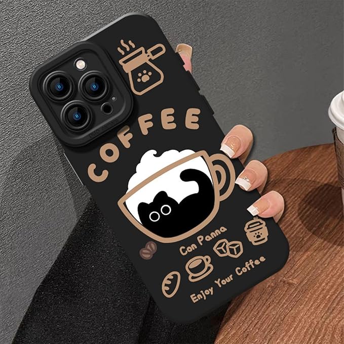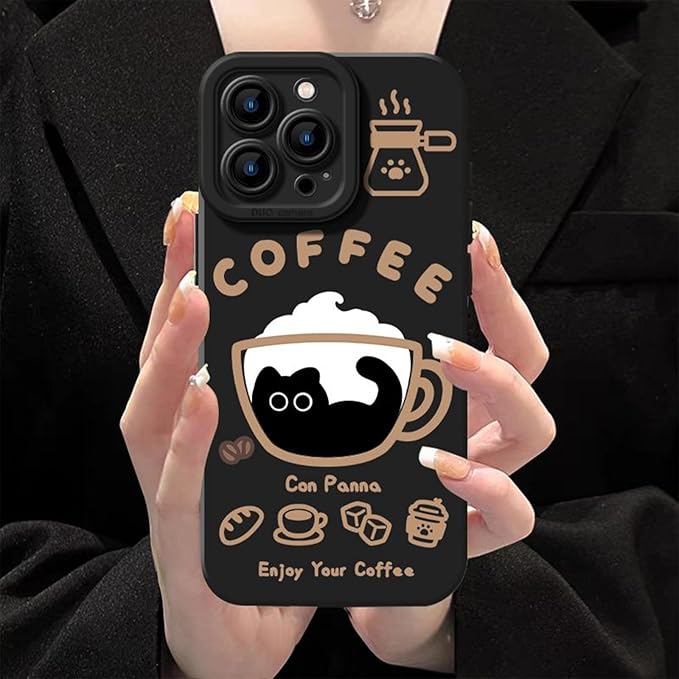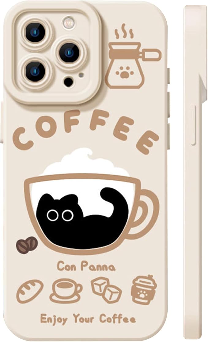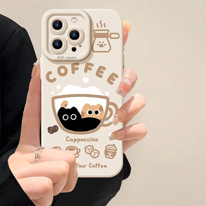可愛い ねこ 猫 ネコ スマホケース iPhone 17 Pro Max 用 ケース コーヒーカップ 猫 17 Pro Max 用 ケース (6.9インチ) ソフトシェル シリコーン Bホワイト ARPE株式会社