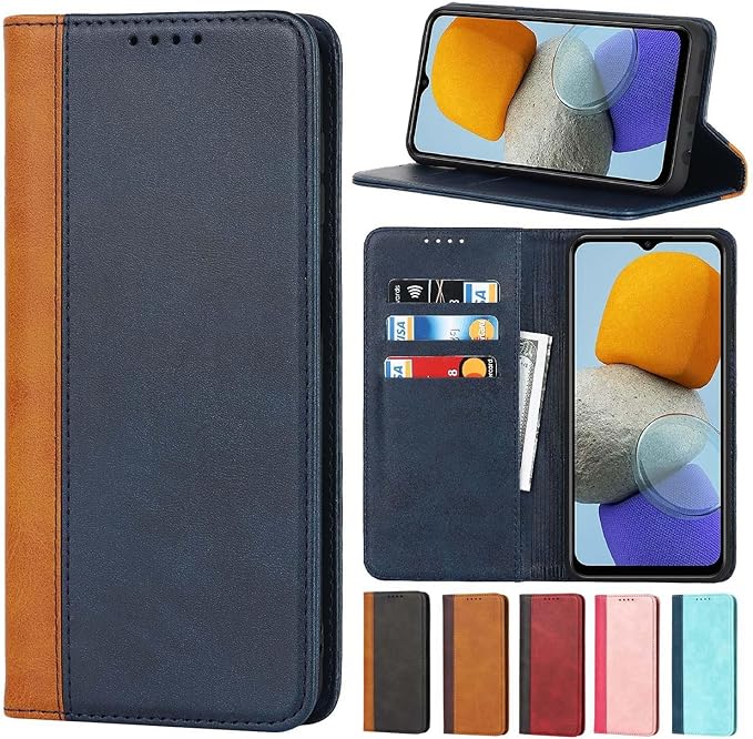 Jaorty Iphone 17 Pro Max と互換性のあるケース 手帳型 アイフォン 17 Pro Max用のスマホケース内蔵マグネット PU革 カード収納 耐衝撃 スタンド機能-ブルー+ ライトブラウン