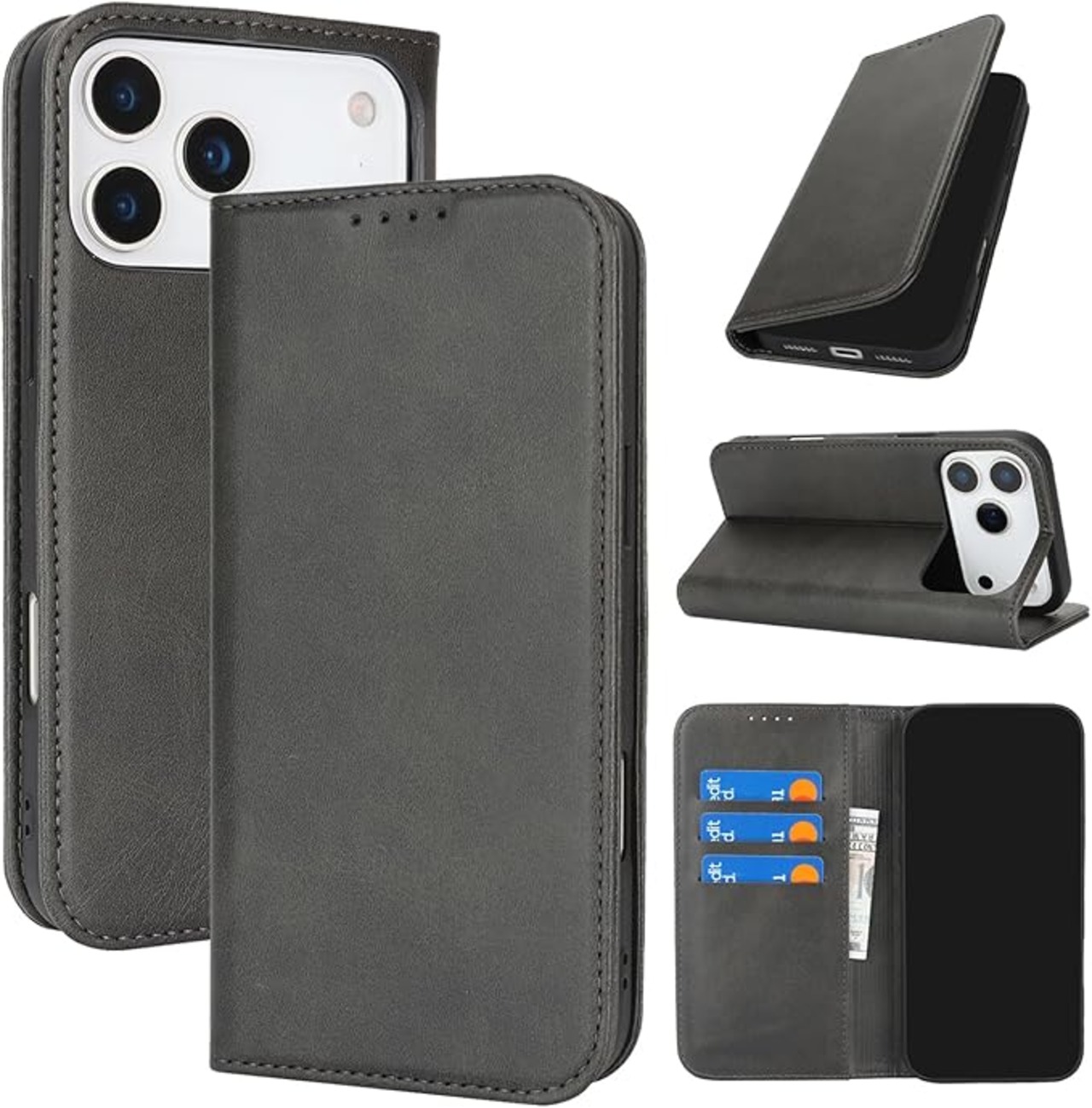 対応 iphone17 pro max ケース 手帳型 アイフォン17 プロマックス スマホケース いphone17 PRO MAX カバー 手帳型 カードスロット、キックスタンド レザー(ブラック)