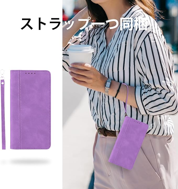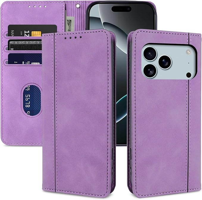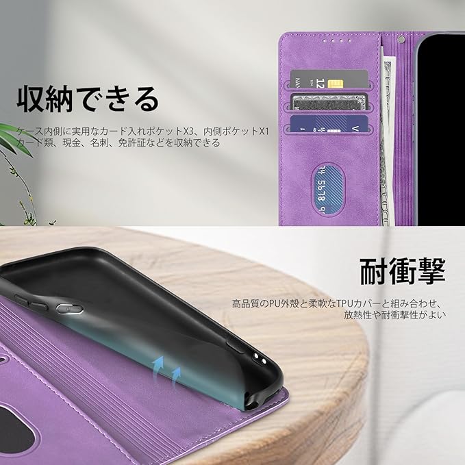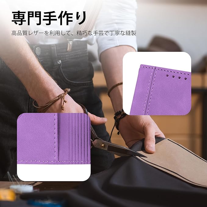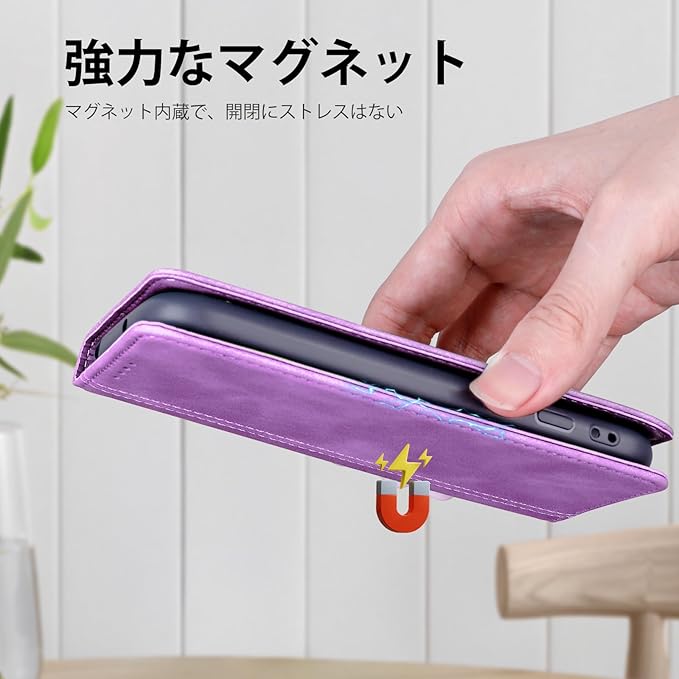 適用 iphone 17 pro max ケース 軽量 薄い PU レザー マグネット カード収納 耐衝撃 スタンド 手作り 持ちやすい 滑り止め すり傷防止マグネット 横置きスタンド機能 財布型 落ち着いた色 お洒落 カバー 落下防止 手触り良い-パープル