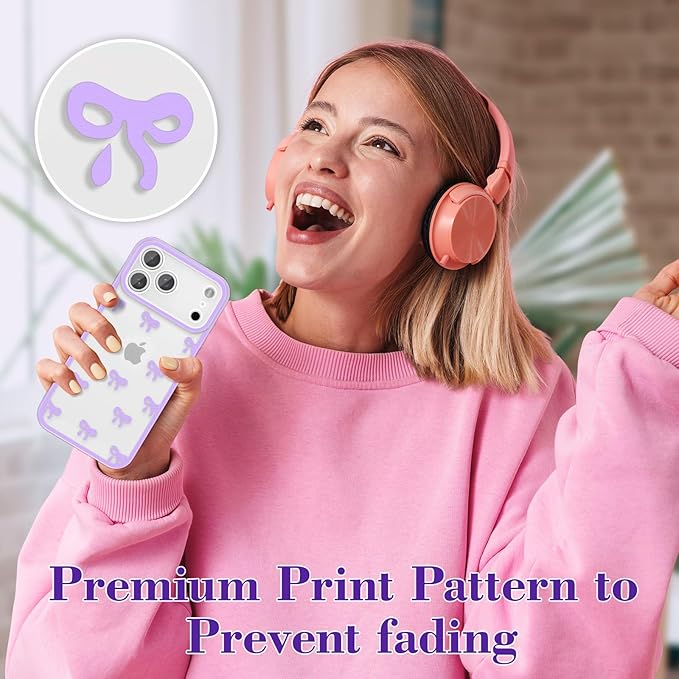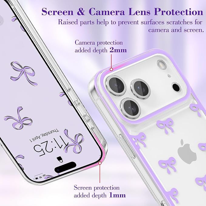 EYZUTAK ケース 対応 iPhone 17 Pro Max 用の 保護ケース かわいい リボン 韓国 おしゃれ カバー 可愛い 透明TPU薄型 軽量 擦り傷防止 保護ケースカバー - パープル