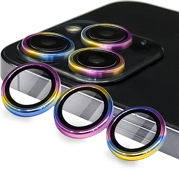 【6枚セット】ILYAML for iPhone17 カメラフィルム iPhone17 Pro用カメラフィルム 17 Pro max レンズ保護カバー 薄型 強化ガラス 耐衝撃 独立型 黒縁取り 露出オーバー防止 アルミ合金 アイフォン プロ マックス用 カメラカバー ライト レインボー
