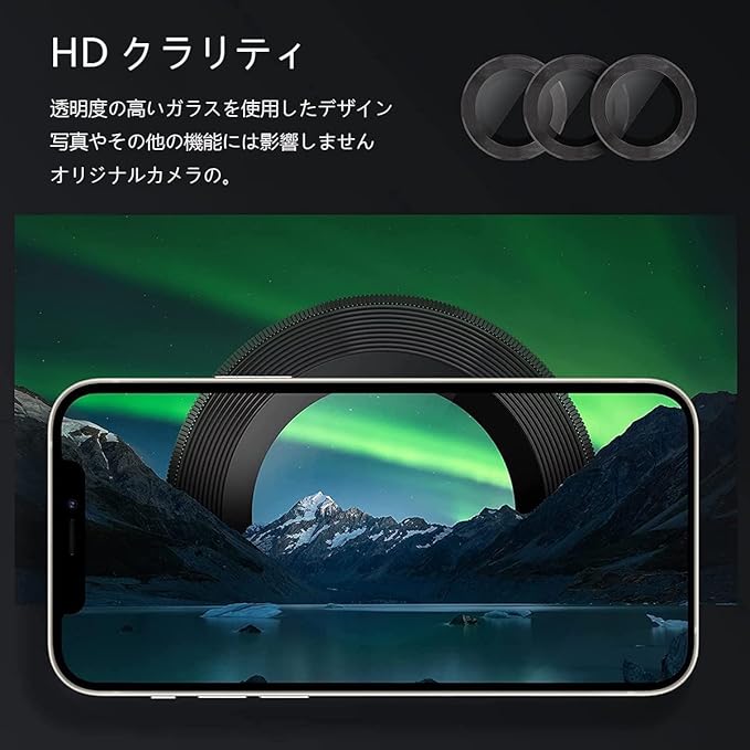 【超高透過率】強化ガラスに光学コーディング層(AR)技術を採用し、高い透明度を実現します。レンズ部分を保護しながら、iPhone本来の高画質を楽しむことができます。わずか0.25mmの極薄型で、違和感もなく本体の設計も損なわないです。