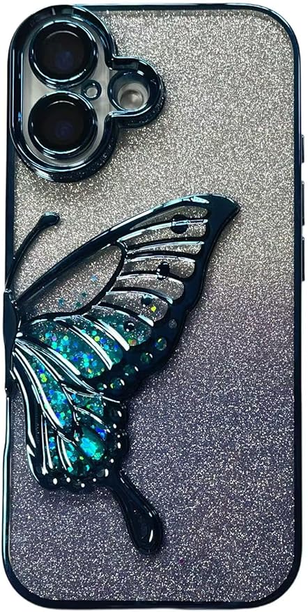 対応 アイフォン17 Pro Max ケース 可愛い 3D 立体 趣味 美しい 蝶 韓国 おもしろ グラデーション フラッシュペーパ 女性 女の子 携帯ケース( iP17 Pro Max, 青 Blue )