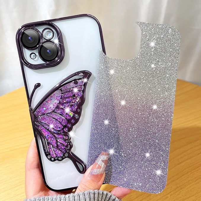 斬新で個性的なデザインの携帯ケースが必要なら、これはいい選択です。美しい蝶、きらめくグラデーションの紙詰まり、携帯ケースはキラキラしていて面白い。