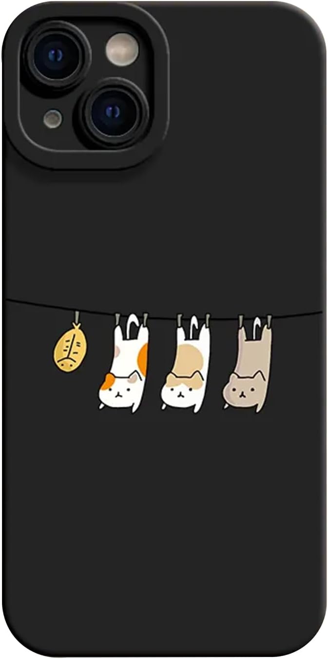 Arpe ねこ 猫 ネコ iPhone 17 Pro Max 用 スマホケース イフォン 17 Pro Max 用 ケース (6.9インチ) ぶら下がっている猫 ソフト軽量 人気 可愛い シリコーン 携帯カバー (黒服,iPhone17ProMax用)