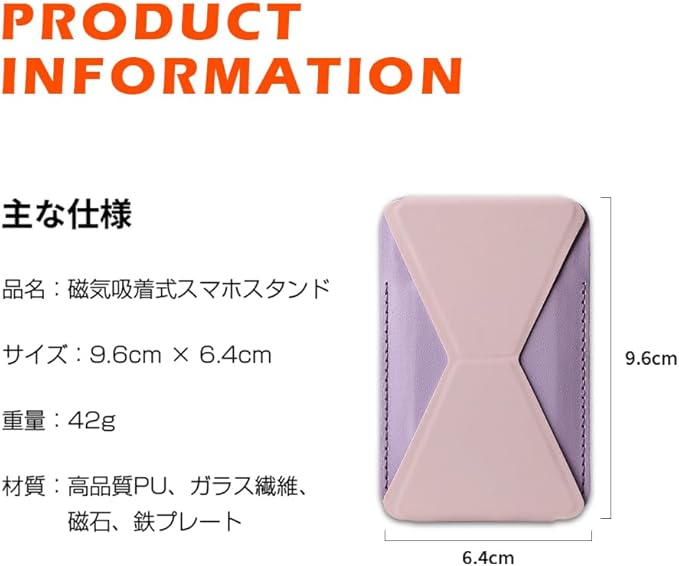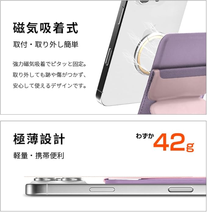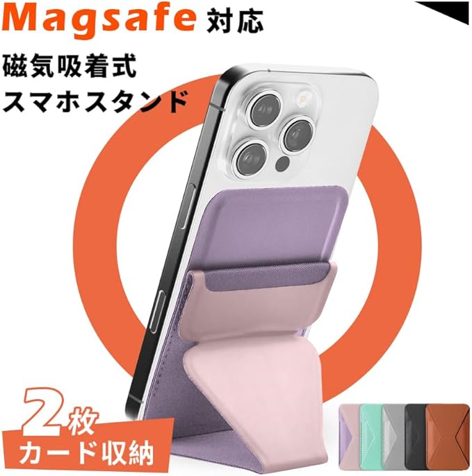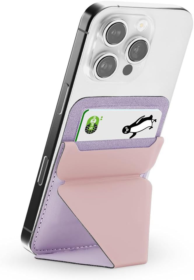 明誠 スマホスタンド カード入れ MagSafe対応 マグセーフ カードケース マグネット式 iPhoneスタンド 強力磁力 For iPhone 17/Air/17 Pro/17 Pro Max/16/15/14/13/12シリーズ対応 カード2枚収納 薄型 軽量 折り畳み式 多角度調節(ライトピンク)