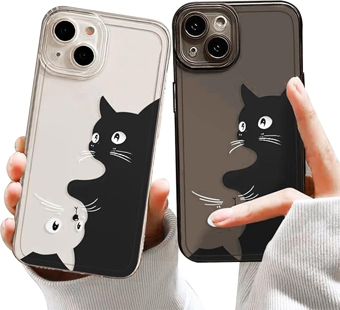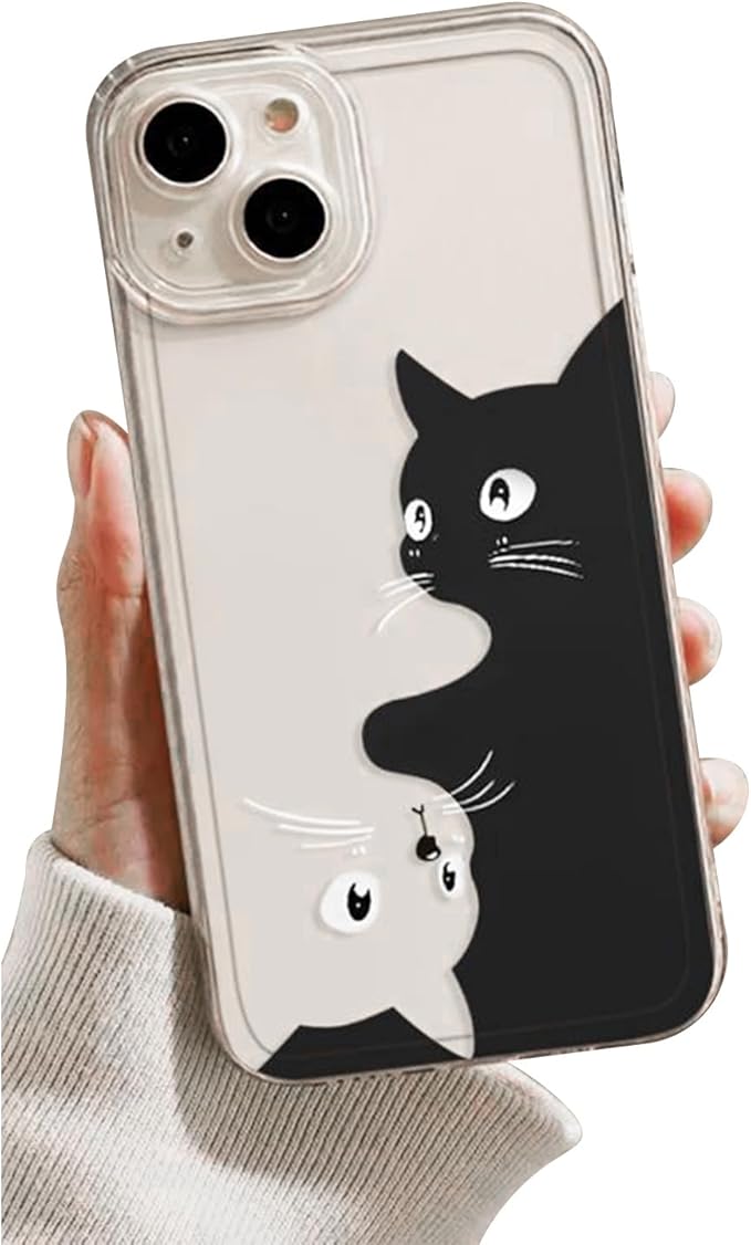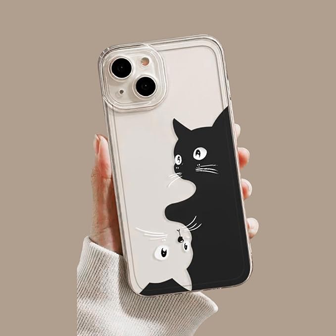 可愛い ねこ 猫 ネコ スマホケース iPhone 17 Pro Max 用 ケース (簡単) アイフォン 17 Pro Max 用 ケース (6.9インチ) シリコーン保護 指紋防止 スマホ バンパー すり傷防止 カラー(ブラック)