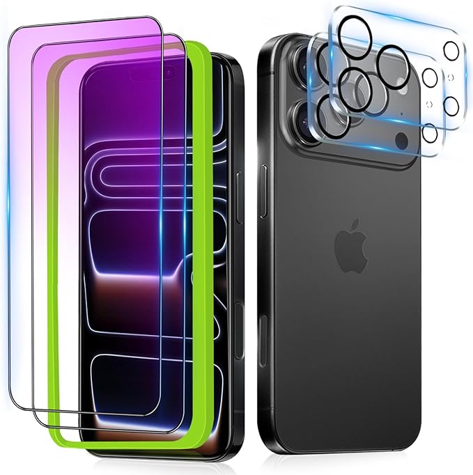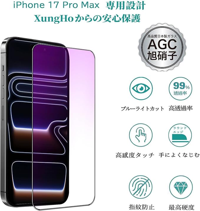 【ブルーライトカット 】 iPhone17 Pro Max 用 ガラスフィルム 【2枚】 液晶保護 フィルム ブルーライト 強化ガラス 【硬度9H/指紋防止/気泡ゼロ/飛散防止/貼り付け簡単/ガイド枠付き】+カメラフィルム【2枚】