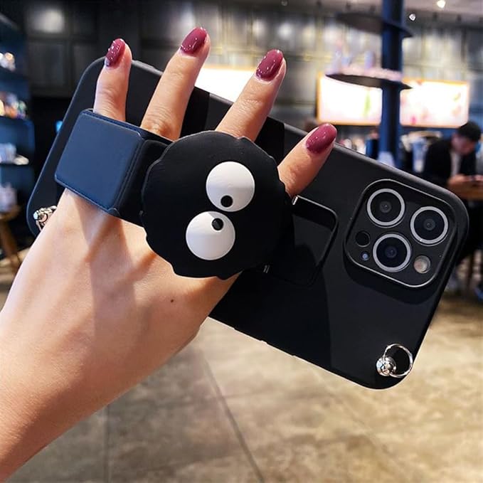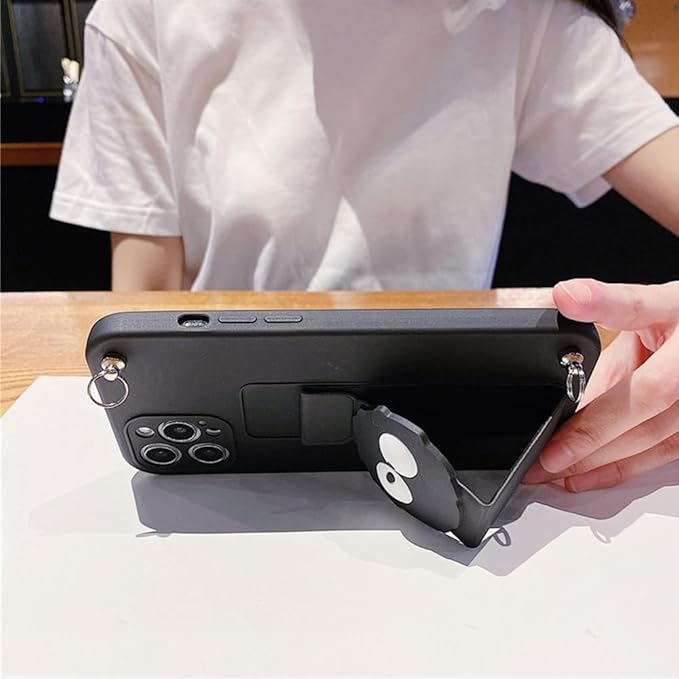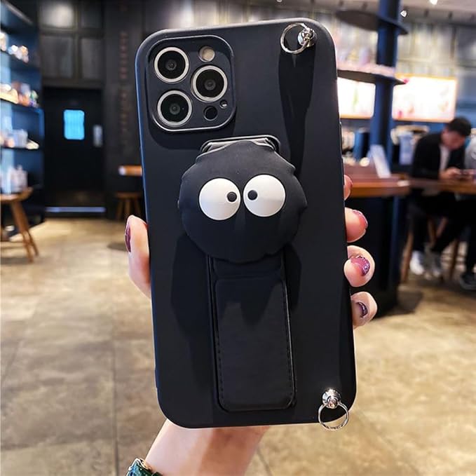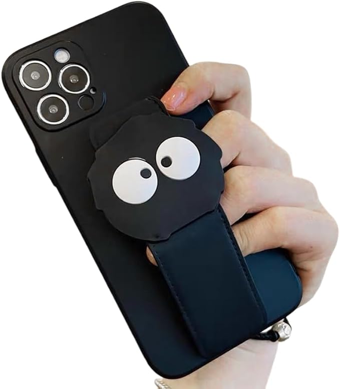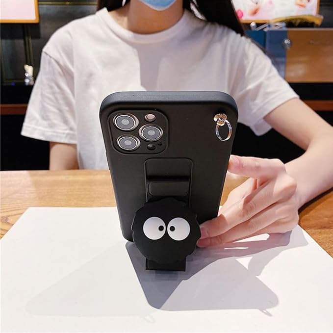 まっくろくろすけ スマホケース iPhone 17 Pro Max 用 ケース 折り畳み式 スタンド機能 キックスタンド シリカゲル保護カバー アイフォン 17 Pro Max 用 ケース 全面レンズ保護