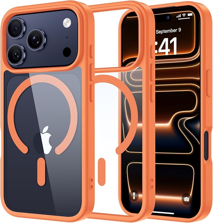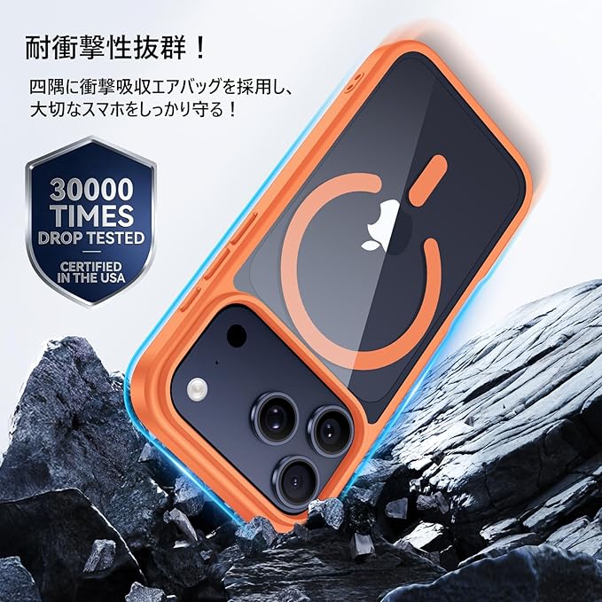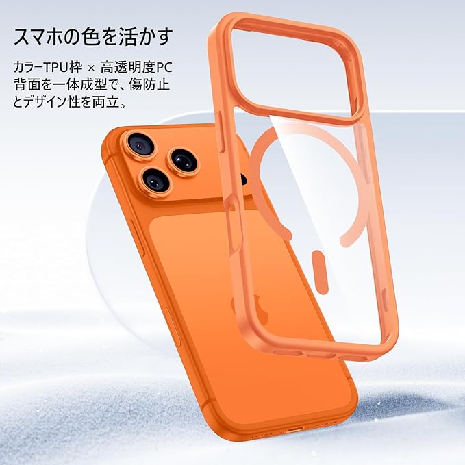 【MagSafe対応・米軍規格】Holidi いphone17promax ケース MagSafe 透明感 マグネット搭載 米軍MIL規格 全面保護 ワイヤレス充電 黄変なし 二重構造 iphone17promax ケース MagToMeCol-Series クリア+オレンジ