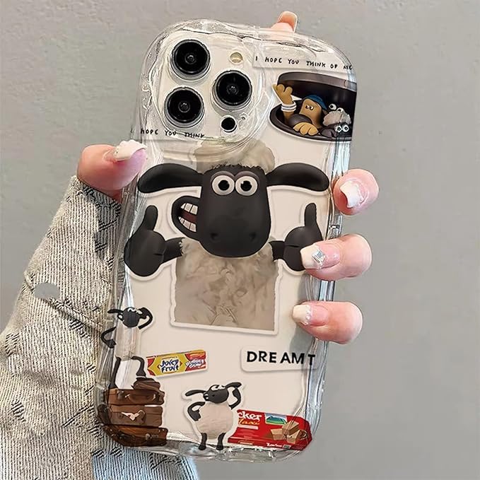 Arpe かわいい 透明な ひつじのショーン スマホケース iPhone 17 Pro Max 用 ケース 傷つきにくさを向上 全面レンズ保護 TPU保護カバー アイフォン 17 Pro Max 用 ケース (6.9インチ) カラー(白)