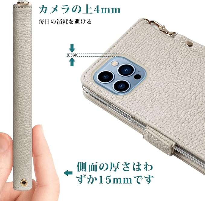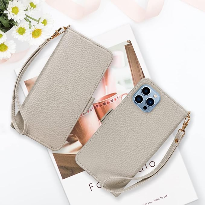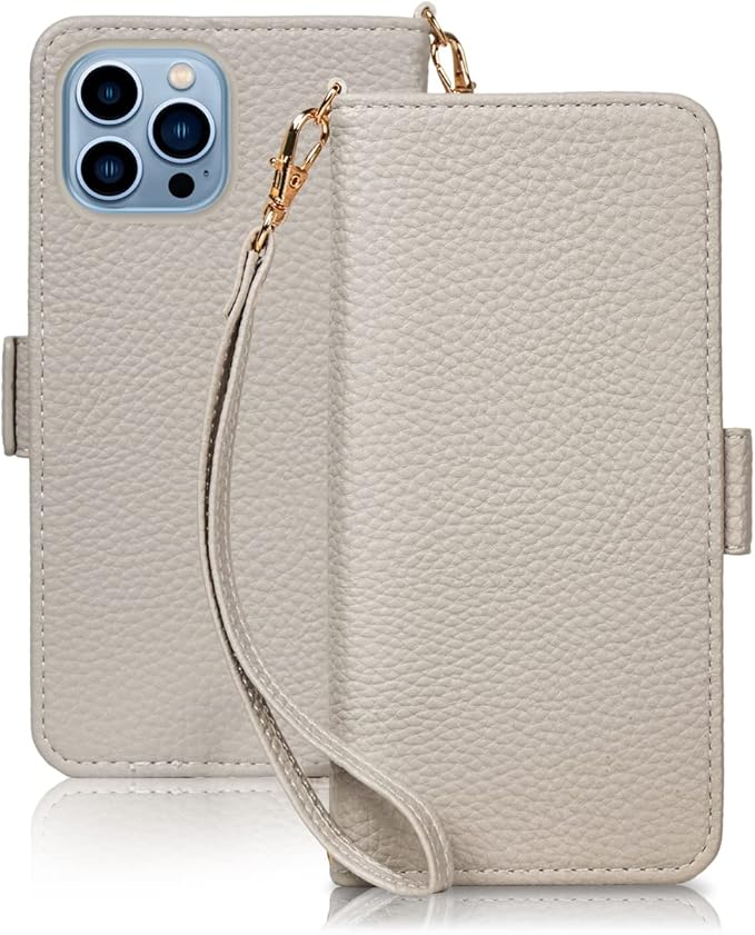SZjamie 手帳型ケース 用の iphone 13 Pro Max ケース 財布型 上質な手触り カワイイ かわいい デザイン ピンク 耐衝撃 全面保護 カード収納 マグネット式 横置き機能 スタンド機能 ハンドストラップ付きで持ち運び便利 プレゼントにも最適 手帳型スマホカバー(13 Pro Max 用の スマホケース,グレー)
