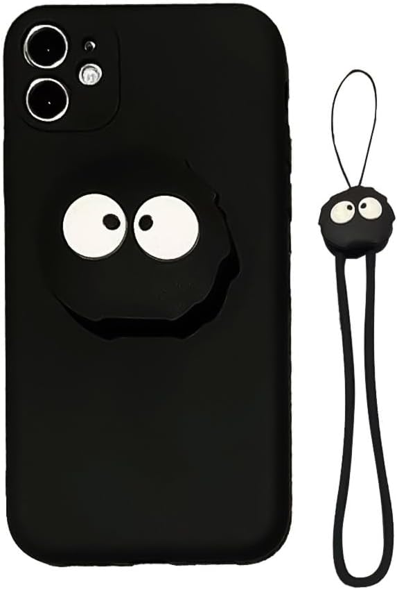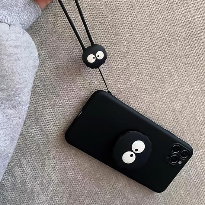 iPhone 17 Pro Max 用 ケース まっくろくろすけ スマホケース ストラップ リストレット 携帯ストラップ キックスタンド ブラケット アイフォン 17 Pro Max 用 ケース シリカゲル保護カバー 傷つきにくさを向上 黒 スタンド機能