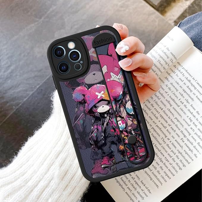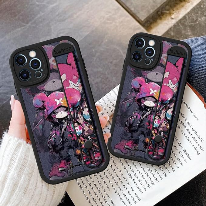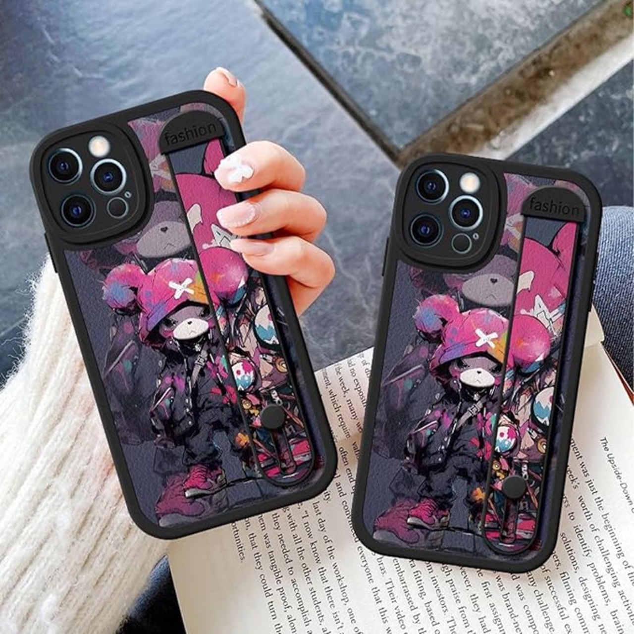 Arpe かわいい ベアブリック カウズ スマホケース iPhone 17 Pro Max 用 ケース アイフォン 17 Pro Max 用 ケース (6.9インチ) キックスタンド リストレット 傷つきにくさを向上 カラー(紫黒)