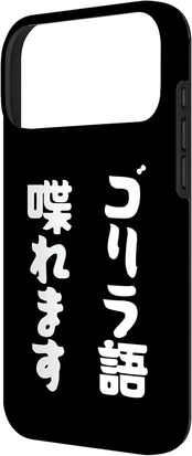 「ゴリラ語 喋れます」冗談 面白グッズ ごりら 猿 サル さる Gorilla 亜種 類人猿 ギャグ 文字 おもしろ スマホケース iPhone 17 Pro Max 用