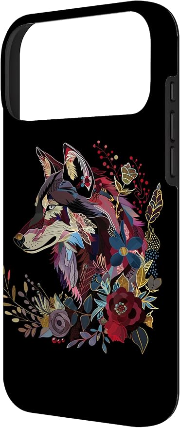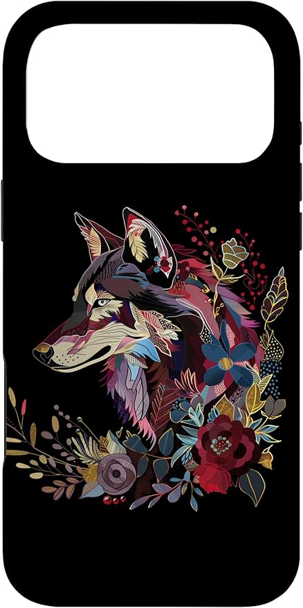 オオカミ ヴィンテージ 花 フローラル オオカミ好き スマホケース iPhone 17 Pro Max 用