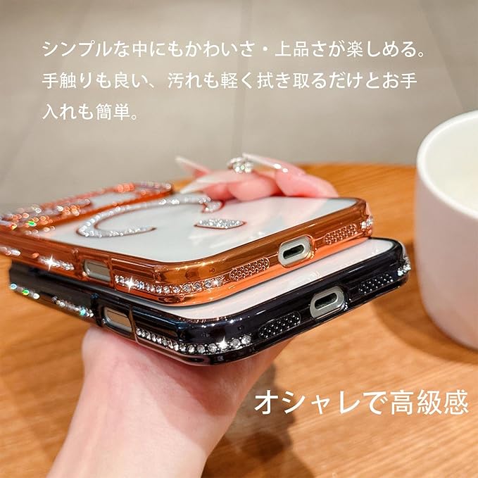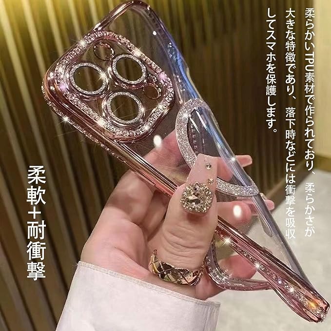 可愛い キラキラ ラインストーン スマホカバー、MagSafe対応機能を備えているスマホケース。カメラレンズ保護 耐衝撃 透明 耐黄変 スマホケース