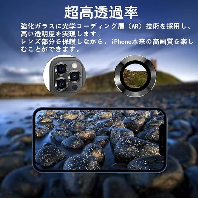 【正確フィット&高密着度】iPhoneのカメラ部分に基づいた1:1の精密設計で、ずれることなく3眼のレンズに正確にフィットします。接着面には超強力接着力、防水性、防汚れ性を備えた高品質3M接着剤を使用しており、様々な環境でも安定した接着効果を維持できます。ホコリや汚れがつきにくいので、長期に安定した保護が提供できます。高い透過性能を持ち、貼って硬化後も跡が残りません。そして、レンズフィルムを剥がした後も跡が残りません。