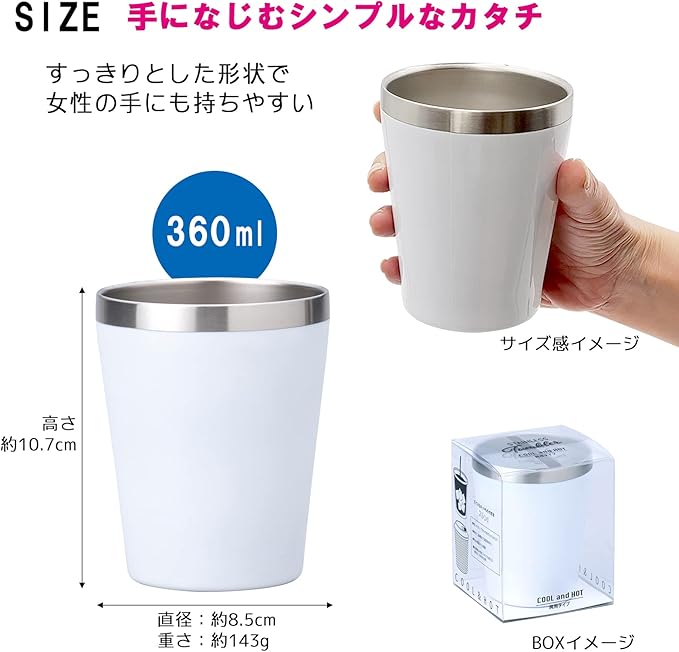 小倉陶器 真空断熱 ステンレスタンブラー 360ml 保温 保冷 二重構造 コンビニコーヒーカップ マグ (マットホワイト) 約φ8.5 h10.7cm