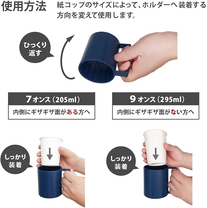 持ちやすく倒れにくい マグカップ みたいに使える 紙コップホルダー 紙コップ オフィス ホルダー 7オンス 9オンス レジャー 便利 安心 (ネイビー)
