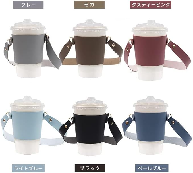 【コーヒーカップを入れる専用のホルダー】 こんなお困りごと、ありませんか? ・コーヒーカップが熱くて持てない ・コーヒーを買ったものの、常に手で持たないといけないので、飲み切るまで大変 ・コーヒーを持ったままウィンドウショッピングができない。お店に入れない。 ・カップを持ったまま傘をさしたり、ベビーカーを押すのが大変過ぎる ・常に手に持ったままなので、ちょい置きしたい ・一人の時は「ちょっと持ってて」と頼める相手が居ないので、大変 等々、 そんなお悩みを解決してくれるのがこのカップホルダーのアイテムです。 【持ち歩きに便利】 ストラップがあることによって、荷物が多い日も、カバンの中から家の鍵を出す際も、財布を出してレジで支払いをする時も、突然の雨で傘をささないといけない時も慌てずに済みます。 また、持ち歩きに便利なかさばらないサイズと軽量設計。お出かけ用のバッグ、通勤バッグに常にしのばせておくことができます。 持ち歩く際の折り畳んだ時のサイズは、横12.5cm、縦8cm、厚み1.5~2cm程度。重量もわずか36gと、とてもコンパクトです。 カップホルダーはトール、グランデサイズにピッタリなサイズ感です。(ショート、ミニサイズの場合はサイズが合わないこともございますので、予め画像のサイズにてご確認くださいませ。) 素材はPUレザー(フェイクレザー)なので、濡れてしまった場合も、万が一こぼしてしまった際も、気にせず拭き取ることができます。 【こんなメリットも・・】 ストラップの付いたバッグタイプだから便利なのは勿論ですが、 それ以外にも、カップの保護という観点からも便利なポイントが。 猫肌さんのあるある、熱くて持てないからホットドリンクを買うのを躊躇してしまう問題、 アイスドリンクを買ったものの、結露でべちゃべちゃで手が濡れてしまう問題も これで解決できます! 【大人カラーの6色展開】 ファッションを邪魔しない落ち着いた大人カラー。 ブラック(黒色)、モカ(茶色)、グレー、ペールブルー(青)、ライトブルー(水色)、ダスティーピンク(ピンク) 6色展開でつい”色ち買い”だってしたくなってしまう可愛さです。 【別シリーズ】 別シリーズで、ホルダーの底部分が付いた、ボックス型のものも販売しています。 底が付いているので、コンビニやコーヒーショップで購入するドリンクカップだけでなく、 自動販売機で購入した缶ドリンク缶を入れたりすることができます。