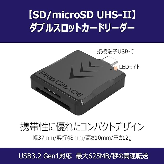 ProGrade Digital [SD/microSD UHS-II] ダブルスロットカードリーダー (PGM0.5) 本体端子USB-C プログレードデジタル 正規輸入品