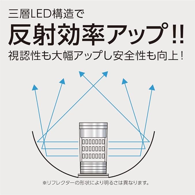 ● 長寿命&高輝度設計:三層LED構造で光の反射効率を高め、安定した発光と耐久性を確保。