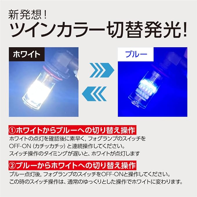 ● 2カラー切替機能搭載:スイッチ操作だけで「クールホワイト(高輝度)」と「ブルー(アクセント光)」を切り替え可能