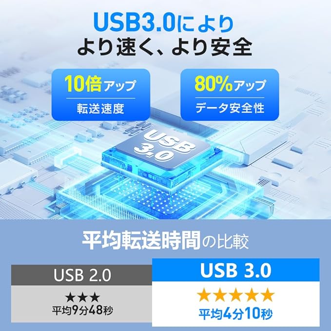 【USB3.0高速転送でスムーズな操作感、安定性も抜群】本製品はUSB3.0ポートを採用し、従来のUSB2.0と比べて最大5Gbpsの高速データ転送を実現。 dvdドライブ 外付け として動画の再生や大容量データの読み書きもストレスなくスムーズに行えます。音楽CDの取り込みや映画DVDの視聴時も、安定した転送速度で途切れのない操作感を提供。 cdドライブ 外付け としても優れた性能を発揮し、USBケーブル1本で電源供給とデータ転送を同時に行えるため配線もシンプル。パソコン usb dvdドライブ 外付け を検討中の方にとって、利便性と安定性を兼ね備えた理想のアイテムです。 光学ドライブ 外付け や 外付け dvd プレーヤー として、日常使いはもちろん、ビジネス用途でも高い信頼性を発揮する一台。 外付けcd/dvdドライブ として、多くのユーザーから高評価を得ている注目のモデルです。
