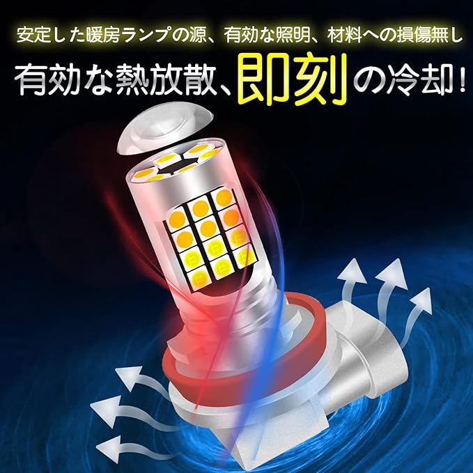 【強力で均一な照明】 CheminiのH8/H11 LEDフォグランプは、30個の3030 SMD LEDチップを備えており、360 の広範な照明角度で死角なしの均一な光を提供します。この高輝度ランプは、雨や霧の日でも視界を鮮明にし、安全な運転をサポートします。