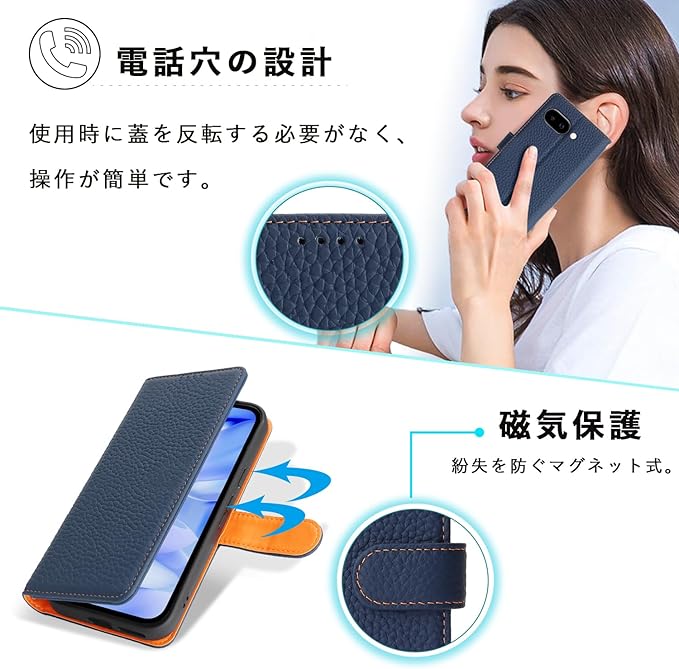 対応 Google Pixel 9a ケース 手帳型 グーグルピクセル9a ケース 本革 カード収納 スタンド機能 ピクセル9a ケース 大容量 財布型 耐衝撃 pixel 9a スマホケース レザー ブルー と オレンジ