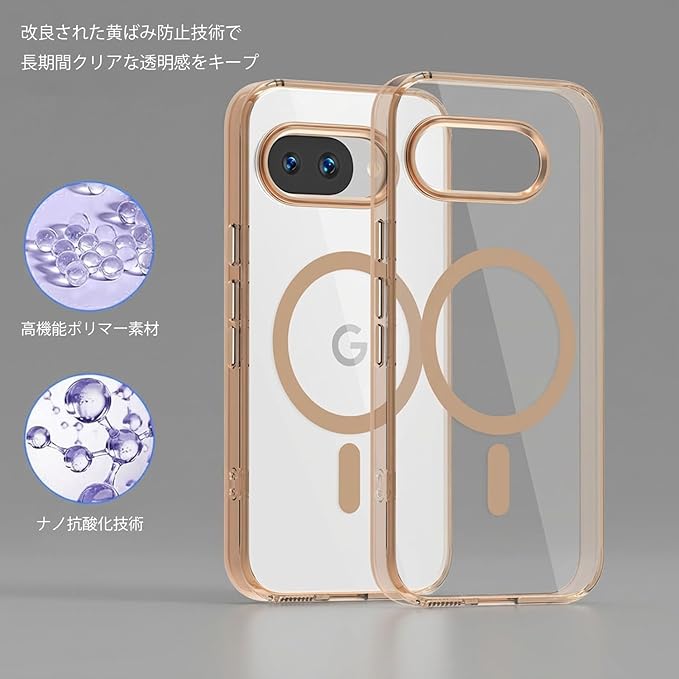empire スマホケース クリア マグネット 透明 高耐久性 指紋防止 黄変防止 ストラップホール Google Pixel用 9a ケース ゴールド 互換品