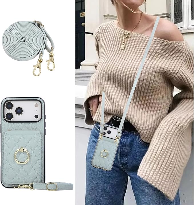 iPhone 17 Pro Max ケース 手帳型 いphone17pro max ケース ショルダー リング付き スマホケース iphone17pro max 背面ケースおしゃれ 背面カード収納 横置きスタンド機能 アイフォン17promax に適用 カバー 可愛い 女性 人気 肩掛け 斜め掛け 財布型 携帯カバー(ブルー)
