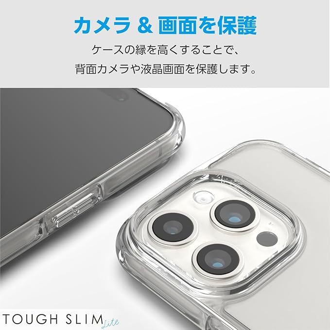 エレコム iPhone15 Pro Max ケース TOUGH SLIM LITE ショルダーストラップホール付き 耐衝撃 衝撃吸収 薄型 軽量 [全周配置のエアークッションが衝撃を吸収] クリア PM-A23DTSLASHCR