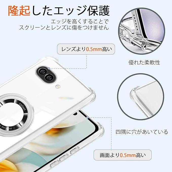 【対応機種】Google Pixel 9A/ピクセル9a 専用設計。透明な背面、場所、カメラ、磁気リングはすべて高材質の材料で作られています。薄くて丈夫で柔軟性が高く、程よいグリップ感があり、本体の持つスリムさをできる限り損なわないよう設計しています。