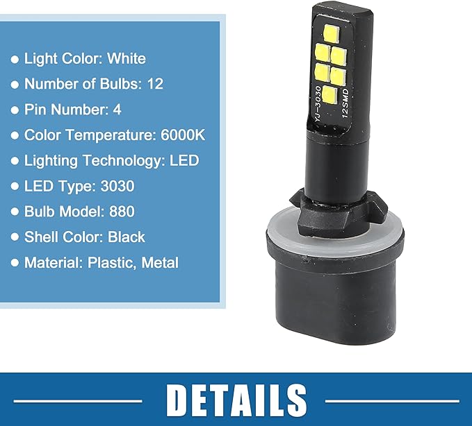 適用 - 880 LEDフォグライト、12個 3030チップが搭載され、プラスチックとメタル製で、小型です。