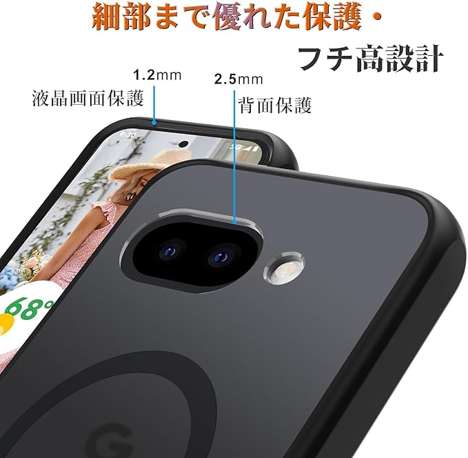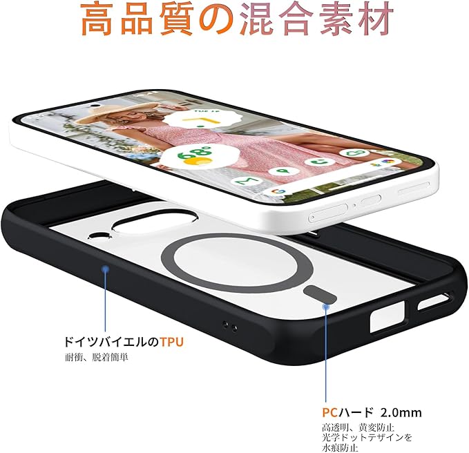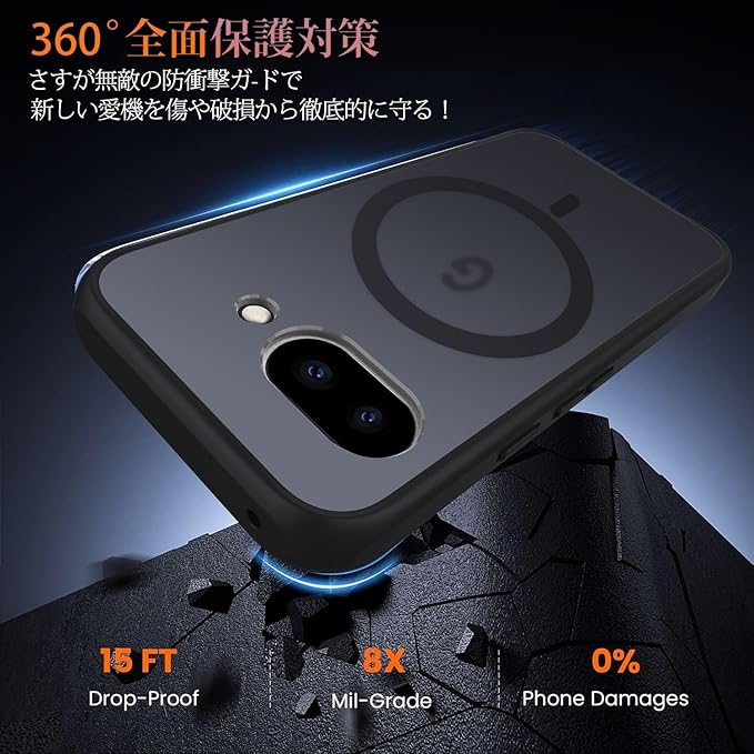 Google Pixel 9a 用 ケース 【MagSafe対応】 2重構造 [TPU+PC] ワイヤレス充電対応 マグネット搭載 ストラップホール付き 神秘的な肌感 耐衝撃 指紋防止 黄変防止 グーグル ピクセル 9a カバー (マット・ブラック)