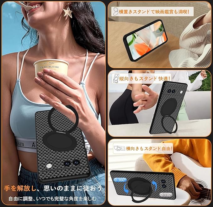 Google Pixel 9a ケース クリア リング360 回転スタンド機能 縦横両対応 TPU 滑り止め 薄型 軽量 黄ばみ防止 防指紋 ピクセル9a スマホケース レンズ保護 ストラップホール付き カバー背面 シェル クバー ソフト 柔軟性 pixel9aカバー 米軍MIL規格 耐衝撃