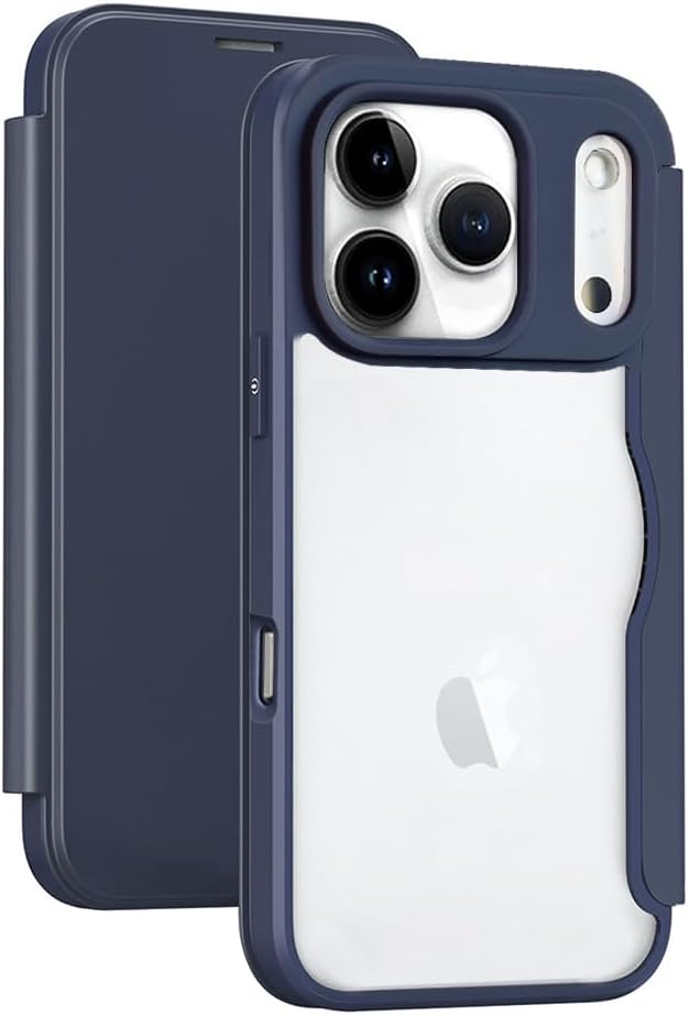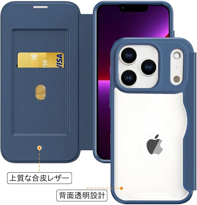 スマホケース 対応 iPhone 17 Pro Max ケース 手帳型 背面 クリア 透明 高級なPUレザー+PCパネル+TPUバンパー マグネットが内蔵 衝撃吸収 軽量薄型 ブランド アイフォン 17プロマックス 手帳型カバー (ブルー)