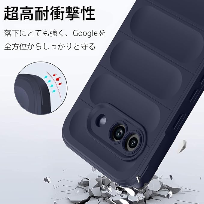 【全面保護】カメラレンズとディスプレイより Google Pixel 9A ケースの保護リブが高いため、平らな場所においても、液晶画面とカメラレンズに直接触れることがなく。またケースの四隅部分にはクッションを搭載していて、スマホを落としてしまっても衝撃を最小限に抑えるケース。側面は滑り止めマットな設計で、グリップ感が有りしっかりと手に馴染みます。