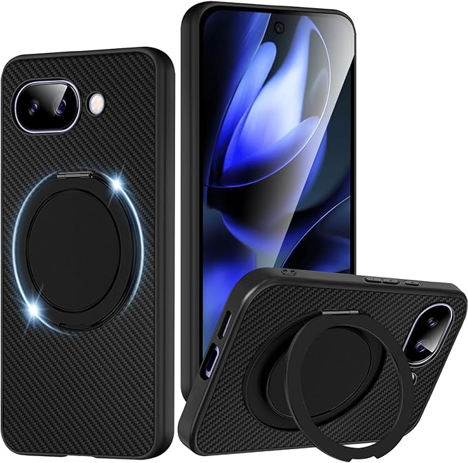 Google Pixel 9a 用 ケース リング 360 回転スタンド 縦横両対応 pixel 9a ケース 耐衝撃 アラミド繊維製 黄ばみ防止 車載ホルダー 指紋防止 薄型 おしゃれ ピクセル9A スマホケース (ブラック)