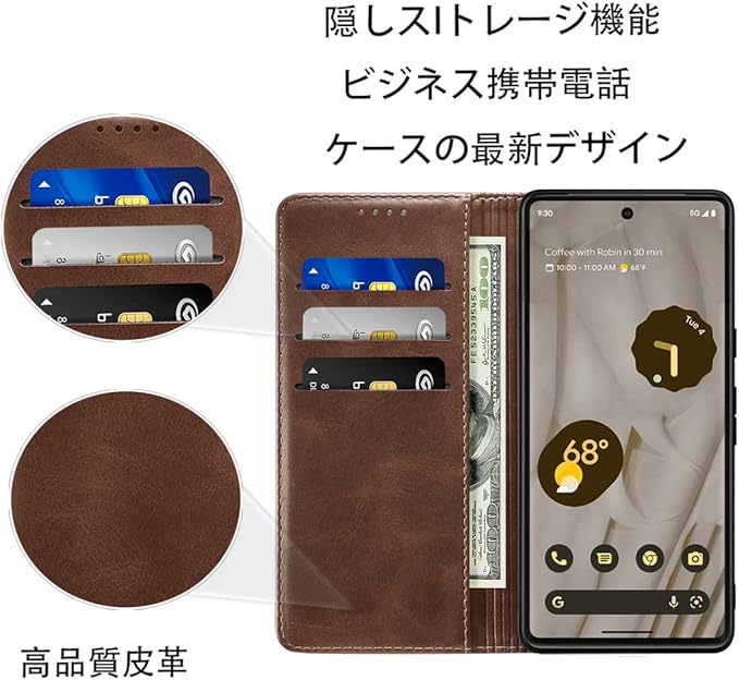 Google Pixel 9A ケース 手帳型 高質PUレザー Pixel 9A ケース Google Pixel 9A カバー ルピクセル7 ケース 手帳型 耐衝撃 内蔵マグネット開閉式 ベルトなし スマホケース おしゃれ カードポケット スタンド機能 便利 スプラット同梱 携帯ケース(ダークブラウン)