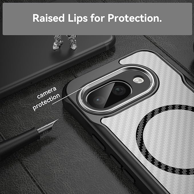 Google Pixel 9a 用 ケース Magnetic対応 クリア 耐衝撃 薄型 米軍MIL規格取得 指紋防止 TPUバンパー+背面PC グーグル ピクセル 9a カバー レンズ保護 滑り防止 ストラップホール付き 黄変防止 滑り防止 携帯カバー 黒 R0115-PX9A-01